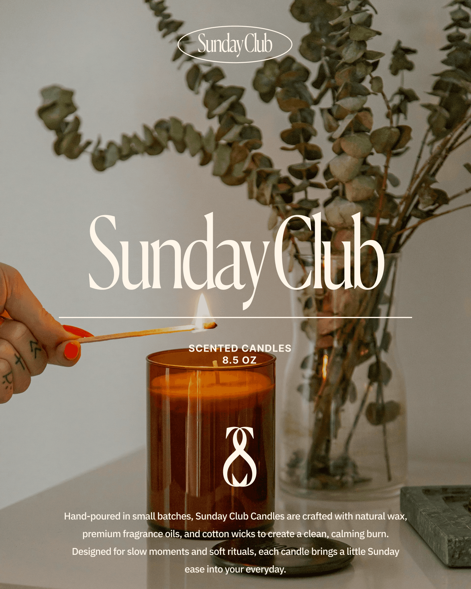 Sunday Club got a complete brand foundation: logo design and strategic positioning for their botanical candle line.