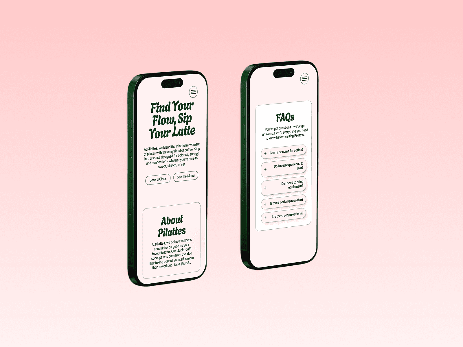 Pilattes is pilates meets coffee… and the name says it all. We built a website that balances both sides of the business: calming studio vibes and cosy café energy.